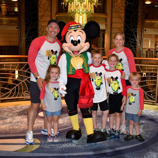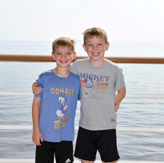 Our morning started with some pastries and donuts on our veranda as the kids woke up. Today is an at sea day as we make our way to Greece which results in a time change. Time moved forward an hour so everyone was a little slow this morning. Liam, Whitaker, and I joined Grandma and Grandpa in the Royal Court for the seated breakfast. Liam chose a Mickey Waffle and Whitaker opted for chocolate chip pancakes. Both kids were more interested in interacting with our server team and looking out the window than actually eating breakfast. Eventually Whitaker decided to go back to the room and Odin joined us finishing up Whit’s pancakes.